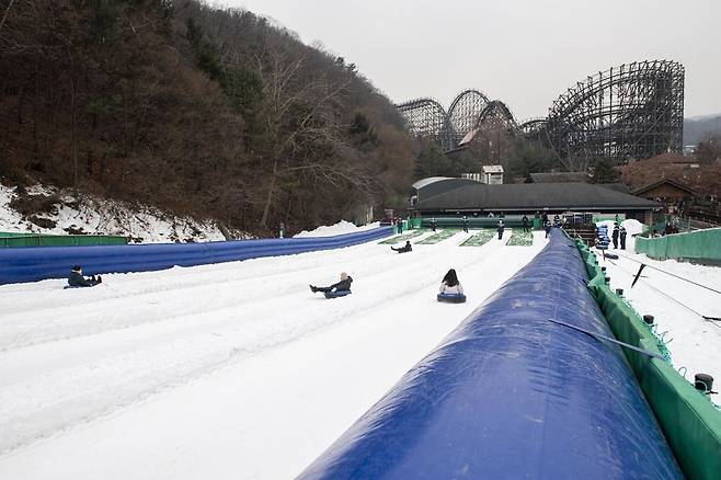 에버랜드는 경기도 용인시에 위치한 대규모 테마파크로, 겨울철에는 '스노우 버스터'라는 이름의 눈썰매장을 운영합니다.