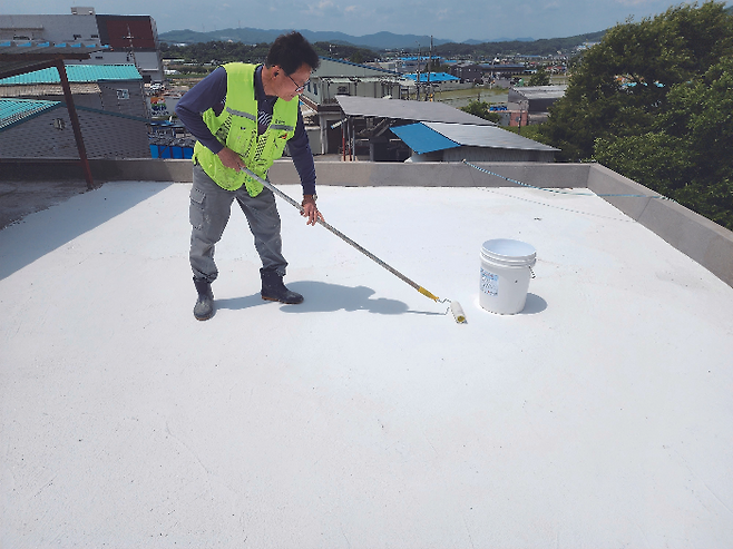 충격이나 환경 영향이 적어 외부에 적합한 페인트방수법