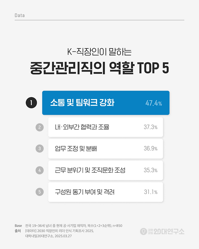 중간관리직의 주요 역할 1위는