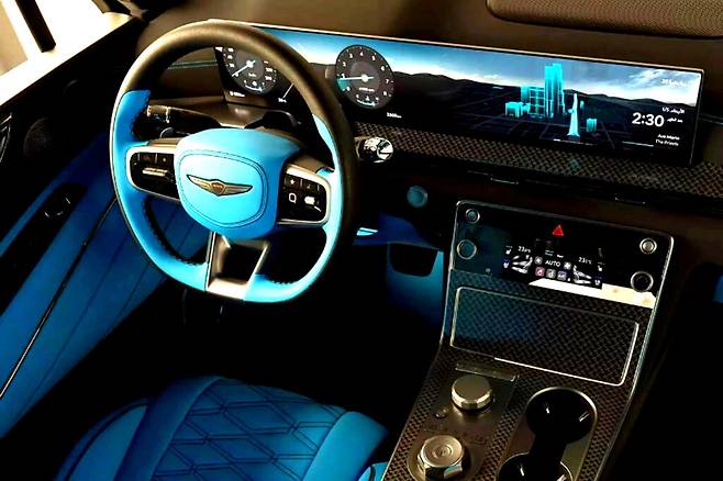 실내 역시 블랙과 블루 가죽을 믹스해 통일감을 유지하면서, 대시보드와 센터 콘솔에는 탄소섬유(카본 파이버) 소재를 더해 세련된 분위기를 완성했다.