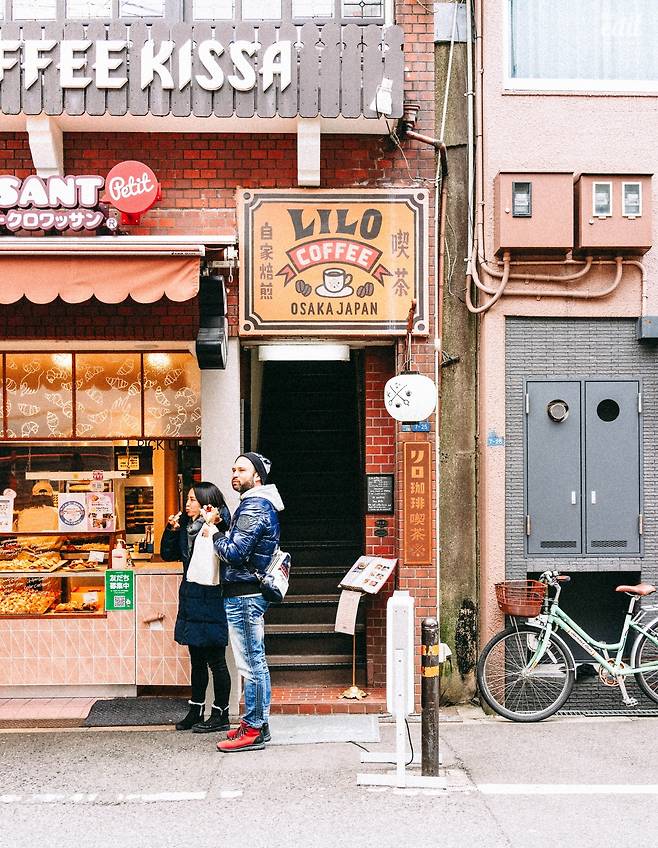 난바의 첫 번째 추천 매장은 ‘릴로커피 깃사’다. 기사텐은 일본 커피를 상징하는 전통적인 다방, 끽다점을 의미한다. 멜커피와 함께 오사카의 스페셜티 커피를 대표하는 릴로커피는 최근, 전통 일본 다방 느낌의 릴로커피깃사 매장을 추가로 열었다. 스페셜티 커피 릴로커피 깃사는 파인다이닝 세프가 평양냉면 전문점을 오픈한 느낌에 가깝다. 매장의 위치는 난바의 금룡라멘에서 멀지 않은 건물의 2층이다. 조금 애매한 위치에도 불구하고, 만석일 경우가 많다.