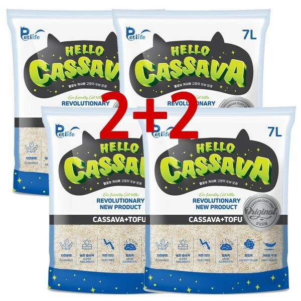 이 제품은 카사바 모래와 두부 모래가 섞여 나온 제품이에요. 카사바와 두부 모두 천연 원료를 사용해 먼지가 적고, 카사바 모래가 들어가 응고력이 좋답니다.
