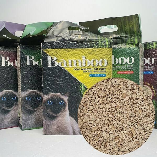 이 제품은 벤토나이트나 두부, 카사바, 옥수수 등이 아닌 대나무로 만든 모래예요. 대나무는 항취, 항균 효과가 탁월해 고양이 대소변 냄새를 잘 잡아주고 곰팡이가 잘 생기지 않는다고 합니다.
