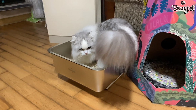 다만, 먼지 날림과 집안에 사막화가 심해 고양이 기관지나 호흡기에 영향을 미칠 수 있어요. 따라서, 천식이나 비염, 결막염을 앓고 있는 고양이라면 다른 모래를 사용하는 걸 추천합니다.