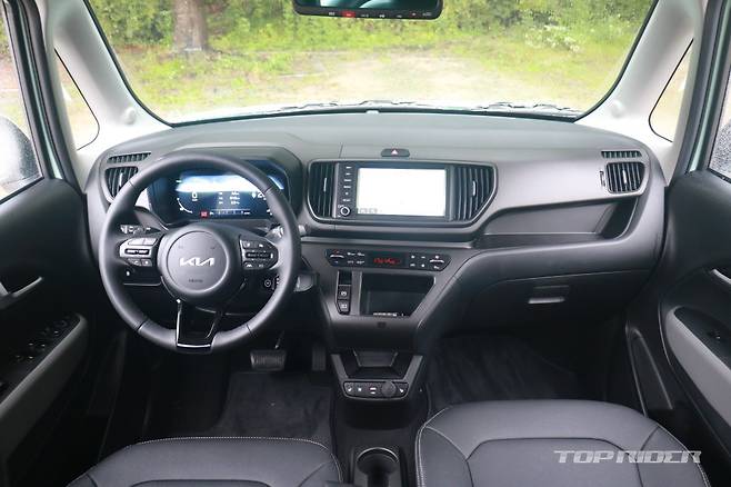 넓은 윈드쉴드와 상당한 크기의 A 필러 삼각창 등 탁 트인 전방 시야가 만족스럽다. 다만 스티어링 휠을 앞뒤로 조절할 수 있는 틸팅 기능을 지원하지 않아 편안한 시트 포지션을 맞추기 어렵다. 상하 조절만 가능한데, 개선이 필요해 보인다. 넓은 공간과 활용성은 강점이다.