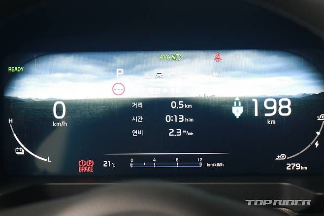 더 뉴 레이 EV는 35.2kWh 리튬인산철(LFP) 배터리로 1회 완충시 205km(도심 233)를 주행할 수 있다. 배터리 80% 상태에서 트립상 주행 가능 거리는 202km로 표시됐는데, 도심보다 고속도로 주행이 많으면 실제 주행 가능 거리가 인증 거리보다 적을 것으로 보인다.