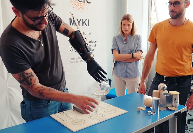 치프리아니 교수는 "팔에 심은 자석과 맞닿는 의수 부분에는 고정밀 자기센서가 내장됐다. 착용자가 손이나 손가락을 움직이려고 하면 남겨진 근육과 거기에 박힌 자석이 움직이고 이를 센서가 읽어낸다"며 "이런 원리로 착용자는 본인 의지로 손이나 손가락의 움직임을 제어할 수 있었다"고 말했다.