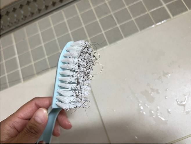 솔로 욕실 청소하면 이렇게 머리카락이 잔뜩 나오는데요