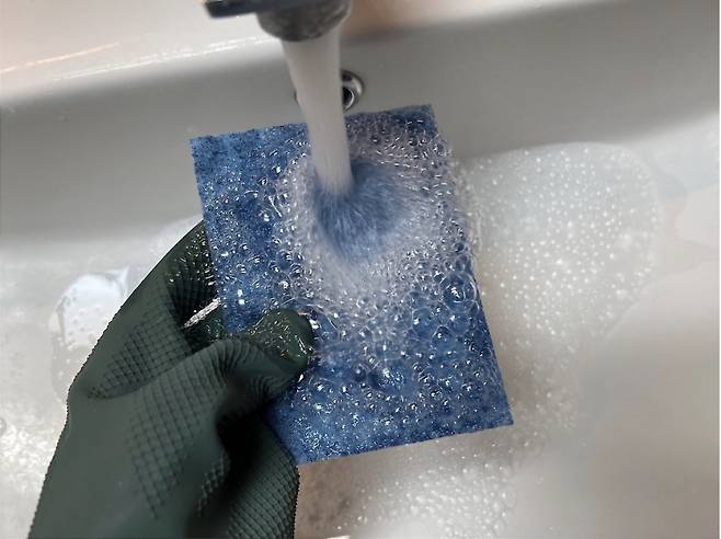1. 세제가 들어 있는 청소용 수세미