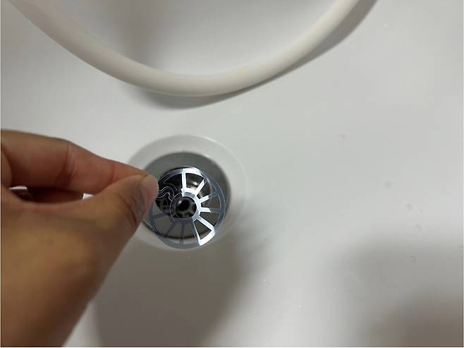 이렇게 쏙~ 끼워주면 좀 더 위생적이고 깔끔하게 욕조 배수구를 관리할 수 있어요