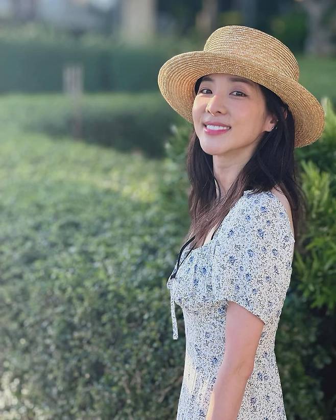이날 산다라박은 잔잔한 플로럴 패턴의 화이트 슬릿 롱드레스를 착용해 우아하면서도 청량한 분위기를 연출했다. 특히 드레스의 허리 라인을 자연스럽게 강조하면서도, 과감한 슬릿 디테일로 다리 라인을 시원하게 드러내며 리조트룩 특유의 자유로움을 강조했다. 여기에 챙이 넓은 스트로 햇(밀짚모자)을 매치해 자외선을 피하면서도 클래식한 무드를 더했다.