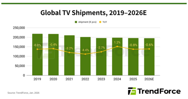 9일 전자업계에 따르면 글로벌 TV 출하량은 최근 몇 년 동안 2억대 안팎에서 크게 벗어나지 못하고 있다. 시장조사업체들은 올해 TV 출하량을 약 1억9500만대 수준으로 예상한다. 2010년대 후반 2억4000만대에 가까웠던 시장 규모와 비교하면 사실상 성장이 멈춘 상태다.