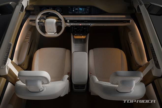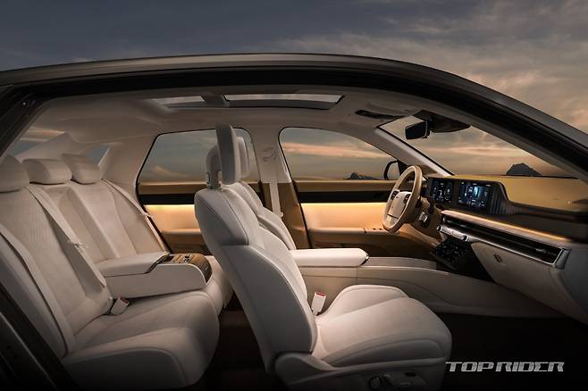 스티어링 휠은 1세대 그랜저의 원 스포크 디자인에서 영감을 받아 조작계를 통합한 형태로 재탄생했다. 가죽 소재와 리얼 우드, 알루미늄 재질의 내장재와 한국적 패턴에서 영감을 받안 나파 퀼팅 등이 적용됐다. 2열 리클라이닝과 전동식 도어커튼, 지문 인증 등을 지원한다.