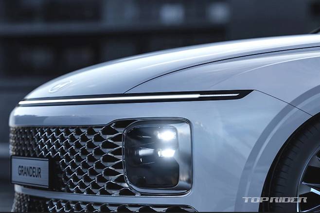 신형 그랜저 전면부에는 현대차의 새로운 조명 디자인이 반영됐다. 끊김 없이 연결된 수평형 램프는 강렬한 느낌을 주는 통합형 그릴과 조화를 이룬다. 측면부에는 프레임리스 도어, 오토 플러시 도어 핸들이 적용됐다. 또한 수평적이로 이어지는 선으로 볼륨감이 강조됐다.