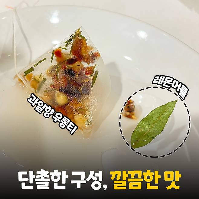 햇살 피치 우롱티는 과일향 티백과 레몬향을 낸다는 레몬머틀 두 가지만으로 이뤄졌는데, 단촐한 구성에 비해 맛이 진해서 깜짝 놀랐어요. 다만 부담스럽거나 과할 정도로 진한 맛이 아니라, 깔끔하다는 느낌이 강했어요.