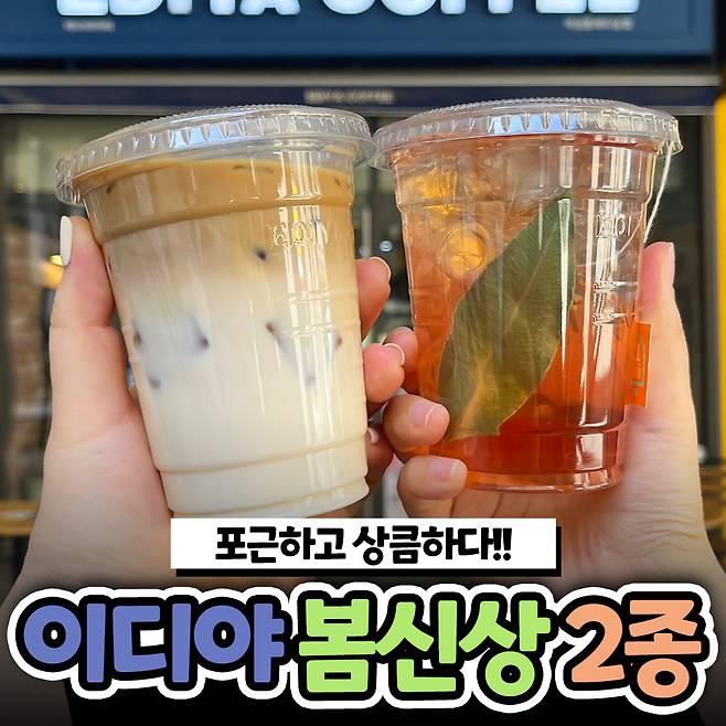 무거운 패딩과 코트를 벗어 던지고 가벼운 옷차림으로 동네마실에 나선 밥심언니, 매일 지나다니던 동네 이디야커피에 새로운 포스터가 붙어 있는 것을 발견하게 되었어요.