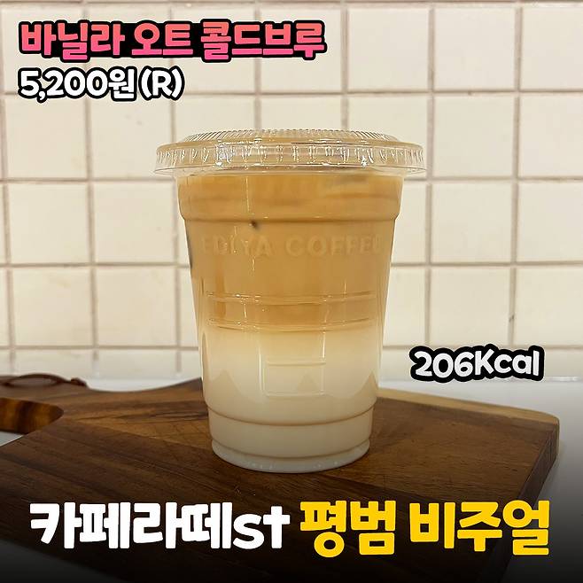 두 번째는 더 평범한 비주얼의 <바닐라 오트 콜드브루>에요. 카페라떼를 주문한 건가 의아했을 만큼 비주얼이 닮아있었어요.