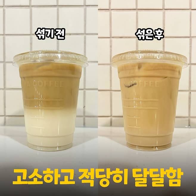 얼음이 다 녹아도 심심하지 않을 정도의 진한 맛이었고, 시종일관 달콤한 맛이 과하지 않아서 좋았어요. 식후나 운동 후에 마시면 기분 전환도 될 것 같은 메뉴에요~☆