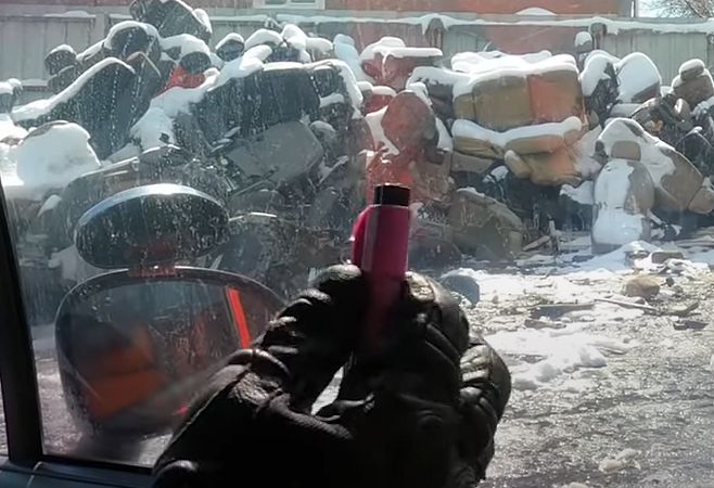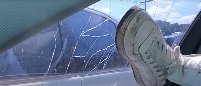먼저 사이드 유리에 휴대용 비상탈출 망치로 유리를 깨보았는데,경차와 중형차 두대 에다 시도를 해보았는데, 쉽게 깨지는 모습을 볼 수 있었습니다.