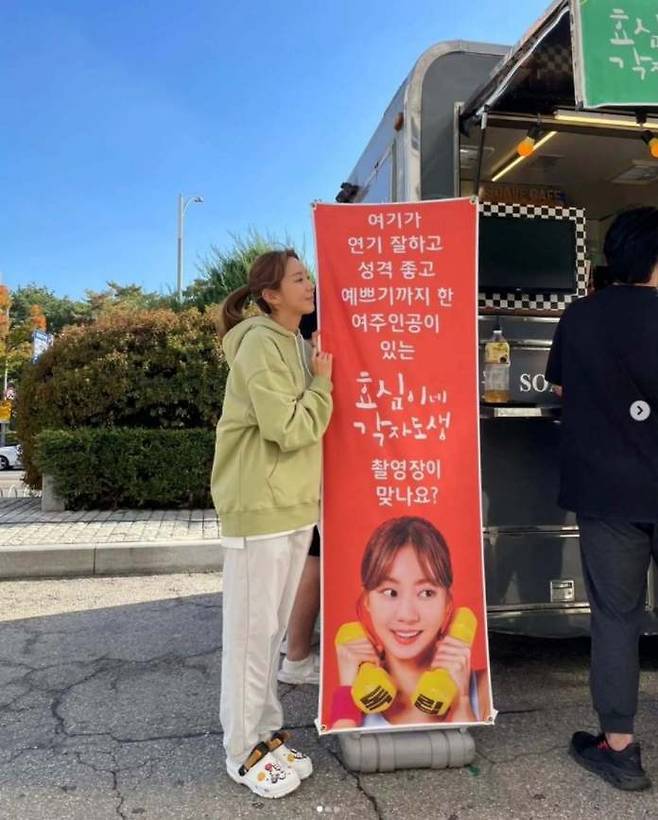 후드티는 활용하기도 쉽다. 유이처럼 흰색 조거 팬츠를 함께 입으면 밝고 편안한 느낌이 된다. 팬츠의 발목 시보리와 후드티 밑단이 이어져 다리가 더 길어 보인다. 신발은 캐릭터 장식이 있는 크록스를 신었다. 전체적인 색이 비슷해 안정적이며, 발끝의 장식이 포인트 역할을 한다.