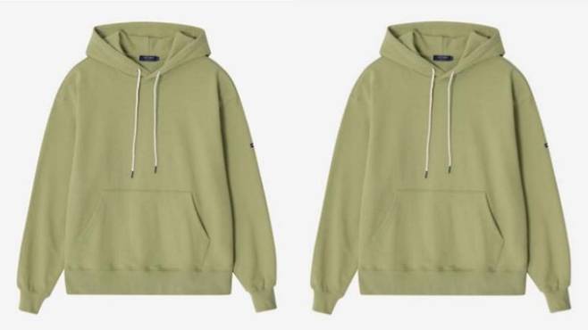 연한 세이지 색이 특징이며 얼굴빛을 밝게 보이게 한다. 색이 지나치게 튀지 않아 부담이 없고, 면 소재 특유의 매트한 표면이 특징이다. 어깨선이 아래로 떨어져 있고 품이 넓게 나와 오버핏으로 착용하기 좋다. 밑단은 시보리가 단단하게 잡혀 있으며, 길이는 엉덩이 윗부분 정도다.