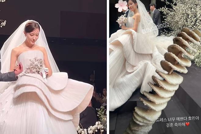그룹 티아라 출신 효민의 독특한 웨딩드레스가 이목을 끌었습니다.