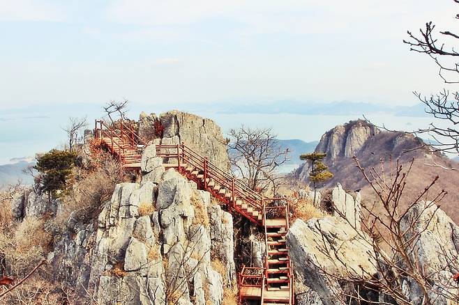가얏교를 건너면 분위기는 자연스럽게 숲길로 이어집니다. 물 위 데크길에서 벗어나 나무 사이를 걷는 구간으로 바뀌는데, 이 구간에서는 뒤돌아보는 풍경이 특히 인상적입니다. 방금 건너온 가얏교와 우륵정이 저수지 위에 그림처럼 떠 있는 모습이 한눈에 들어와, 그래서 많은 분들이 이 지점에서 발걸음을 멈추게 됩니다.
