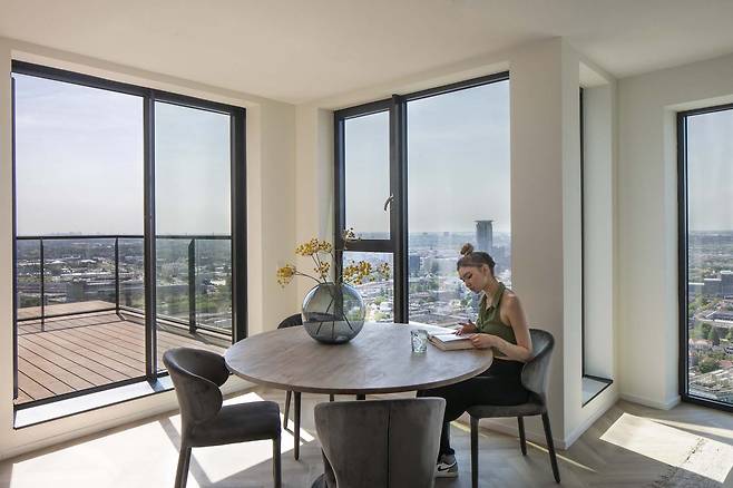 요즘 국내 아파트는 발코니를 내부로 편입시켜 찾기 쉽지 않지만, 고급 아파트 상층부나 단독 주택의 테라스와 비교해도 Grotius Towers의 발코니와 테라스는 내부와 너무 자연스럽게 연결되는 외부 공간을 가지고 있다. 크기가 크지는 않지만 내부에서 보고만 있어도 외부를 만끽하고 있는 느낌이다.
