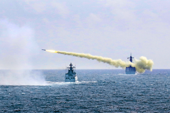 중국 해경·군함 동원, 조사선 막는 대치전