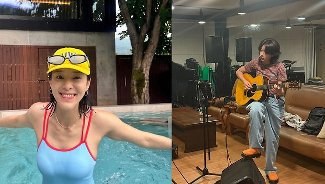 파랑과 빨강이 조화로운 수영복 차림으로 환하게 웃거나, 물에 젖은 머리를 쓸어올리는 모습 등 자연스러운 여름 분위기를 자아냈다.