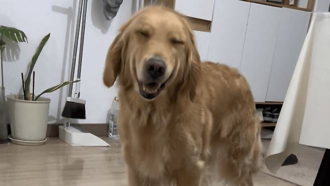주인이 이 난장판을 발견하고 얼굴을 찌푸렸을 것입니다. 주인이 골든 리트리버를 부르자, 그 친구는 세상에서 가장 느릿느릿하고 조심스러운 걸음걸이로 다가왔습니다. 고개를 갸웃거리며 무고한 척하는 모습은 그야말로 사죄하는 듯한 표정이었습니다.