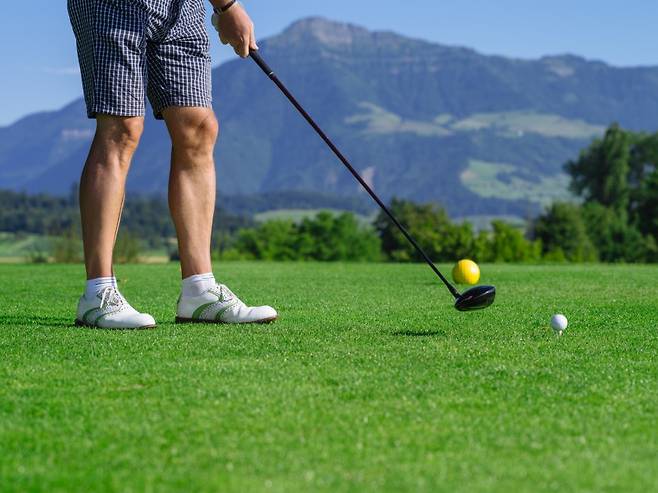 그렇다면 볼을 낮게 보내는 방법은 무엇일까요? 우선 티의 높이는 평소보다 조금 낮게 꽂고, 볼의 위치는 평상시 보다 볼 1~2개 정도의 거리로 오른쪽으로 이동 시켜야 합니다. 맞바람에도 비거리가 줄지 않는 좋은 꿀팁이죠.