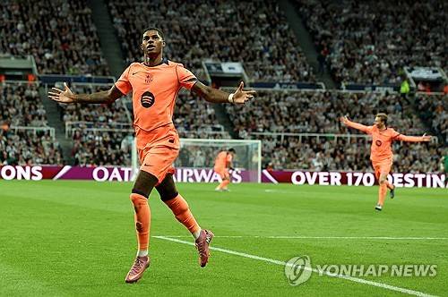 '탈맨 효과' 미쳤다! '아모림 보고 있나' 래시포드, 바르셀로나 데뷔골→멀티골 폭발…뉴캐슬 2-1 격파 '선봉장'