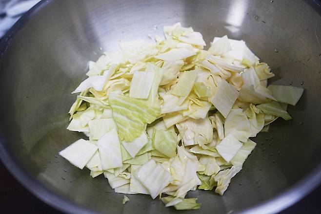 양배추가 부서지지 않게 가볍게 섞어주세요.