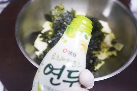 양념재료: 샘표 연두 1스푼, 참기름 2스푼, 참깨 1스푼