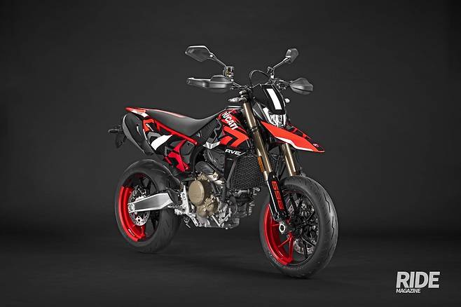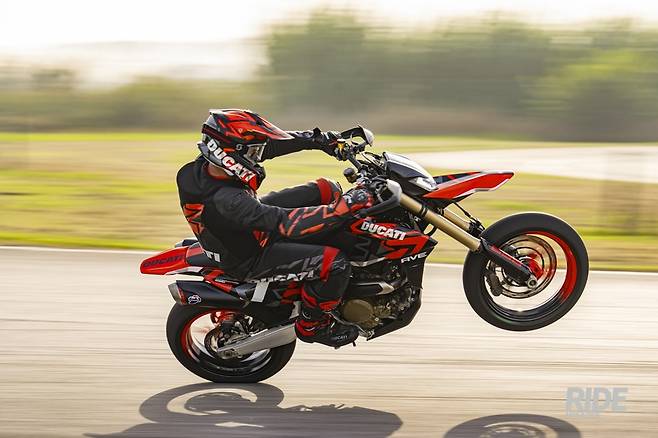 두카티에서 가장 공격적인 스타일의 모터사이클로 하이퍼모타드를 꼽는데 이견이 없을 것이다. 외관에서의 스타일은 네이키드에 가깝지만, 핸들과 가까운 위치의 시트포지션에 핸들바에서 연료탱크, 시트를 지나 후미까지 일자에 가깝게 이어지는 디자인은 낭떠러지 끝에 앉아있는 기분이 들 정도. 이런 하이퍼모타드에는 그동안 L트윈 엔진을 탑재해왔는데, 이번 신형은 새로운 단기통 엔진으로 언제 어디서든 앞바퀴를 들어올릴 준비를 마쳤다.