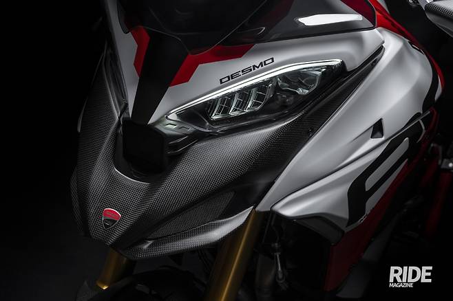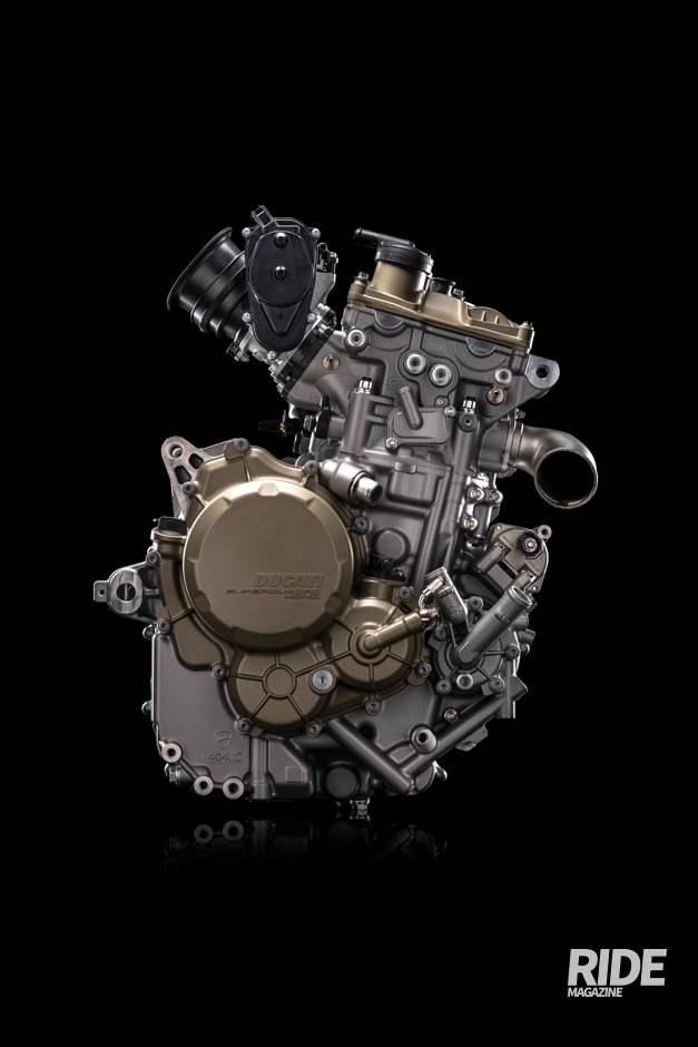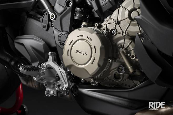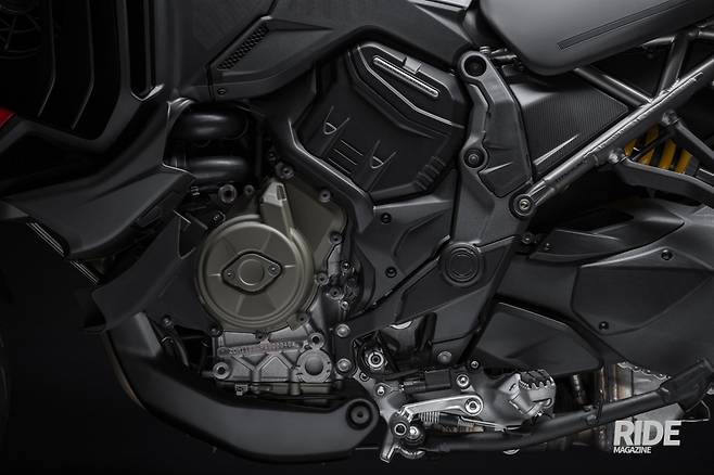배기량 1.103cc의 V4 데스모세디치 스트라달레 엔진은 180마력/12,250rpm의 최고출력과 118Nm/9,500rpm의 최대토크를 발휘하며 회전한계는 13,500rpm에 달할 정도로 기존과는 다른 고회전에서의 짜릿한 파워를 제공할 것으로 기대된다. 물론 같은 엔진을 사용하는 파니갈레나 스트리트파이터와는 다른 특성을 갖는 만큼 출력 특성을 수정해 저회전대에서도 꾸준하게 출력이 발휘되도록 설정했다. 배기 시스템은 전용 설계된 아크라포빅 머플러가 포함된 배기 시스템이 채택되어 슈퍼스포츠 못지 않은 짜릿한 배기음을 제공한다고. 또한 시내에서의 주행을 고려해 엔진 온도 70℃ 이상일 때 중립 상태에서 정지해 있으면 후방 실린더들을 비활성화하도록 설계해 엔진에서 발생하는 열을 감소시킨다. 반대로 추운 날씨에는 다리 쪽으로 향하는 송풍구를 닫아 체온 유지에 활용할 수도 있다.