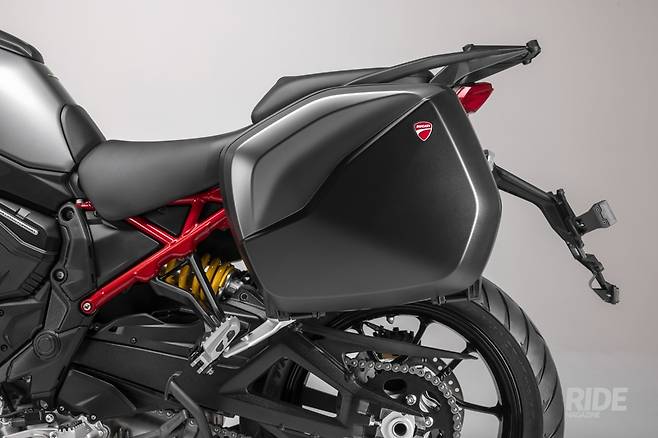여기에 옵션으로 장착하던 사이드 케이스가 그랜드 투어에는 기본 사양으로 적용된다. 사이드 케이스의 전체 용량은 60L여서 어지간한 투어링에 필요한 장비들을 손쉽게 적재할 수 있다. 그리고 장시간 주차는 물론이고 정비 등에서도 유용하게 쓸 수 잇는 센터 스탠드 역시 기본 구성에 포함된다.