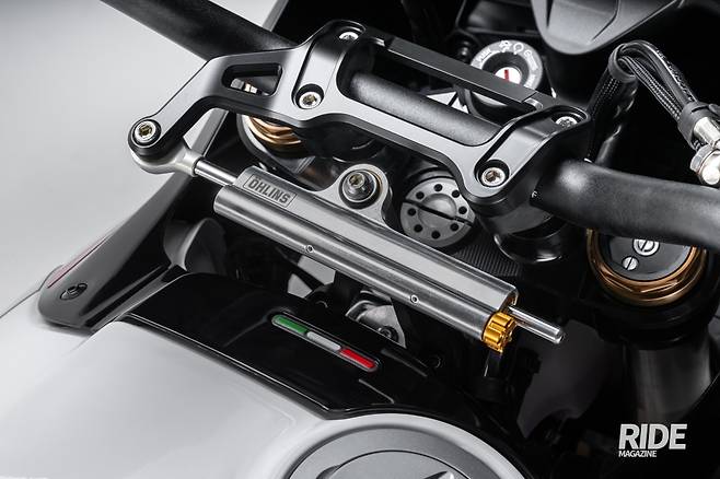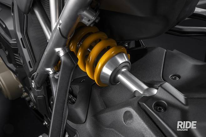 서스펜션은 올린즈 스마트 EC 2.0이 앞뒤로 적용되어 주행 모드나 동승자 및 짐 여부에 따라 감쇠력을 자동으로 조절하며, 압축과 신장, 예압 등 세부적인 설정을 개별적으로 조절하는 것도 가능하다. 브레이크는 브렘보 스틸레마 모노블럭 캘리퍼가 적용됐으며, 파니갈레 V4와 동일한 사양의 패드가 적용됐다. 또한 코너링 중 제동 시 원하는 라인을 그리도록 제동력을 세밀하게 조절하는 보쉬-브렘보 10.3ME 코너링 ABS 시스템도 함께 탑재되어 있다.