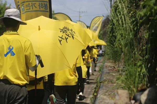 | ▲ 봉하로 가는 사람들 여덟 번째 ‘노무현 순례길’의 깨시민들이 ‘사람 사는 세상’의 노무현이 좋아, 올해도 그 뜻을 잇고자 5월 1일 그가 잠든 봉하마을로 내려가는 대장정에 오른다. 사진은 지난해 5월 깨시민들이 봉하로 내려가고 있다. |