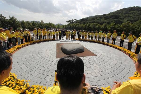 | ▲ 봉하로 가는 사람들 여덟 번째 ‘노무현 순례길’의 깨시민들이 ‘사람 사는 세상’의 노무현이 좋아, 올해도 그 뜻을 잇고자 5월 1일 그가 잠든 봉하마을로 내려가는 대장정에 오른다. 사진은 지난해 5월 23일, 순례길 깨시민들이 봉하에 도착해 참배를 하고 있다. |