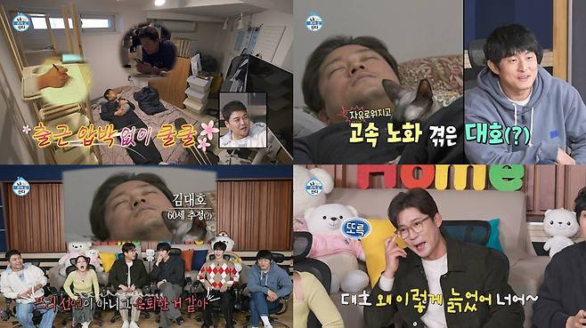 코까지 골며 낮잠을 자는 김대호의 얼굴을 보던 기안84는 "대호, 왜 이렇게 늙었어!"라며 "프리 선언이 아니고 은퇴한 거 같아"라고 놀라 폭소를 자아낸다.