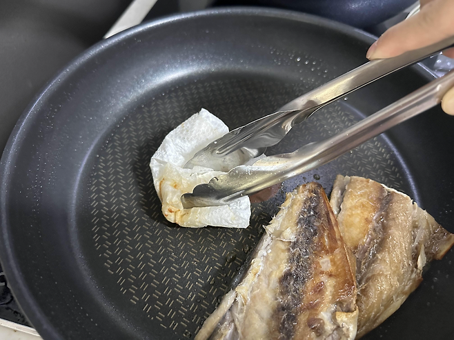기름을 키친타월을 이용해 완전히