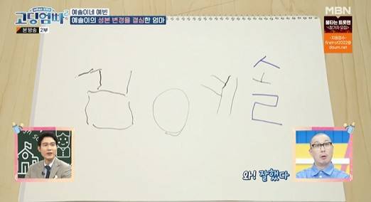 또한 엄마인 예빈의 성을 따서 딸 예솔의 성본 변경을 결심한 예빈의 모습이 공개됐다. 예솔은 갑작스러운 성본 변경이 이해되지 않는 상황에서도 엄마가 바라는 ‘김예솔’을 열심히 한글로 쓰는 모습을 보였다. ‘김예솔’이란 이름이 예쁘다고 말하며 엄마의 속을 헤아리는 듯한 예솔이.