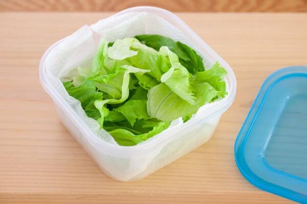 양상추, 상추처럼 수분에 약한 채소는 냉장고에 넣기 전 휴지로 감싸거나, 보관 용기 아래에 휴지를 깔아두면 수분을 흡수해 더 오래 신선하게 보관할 수 있습니다.