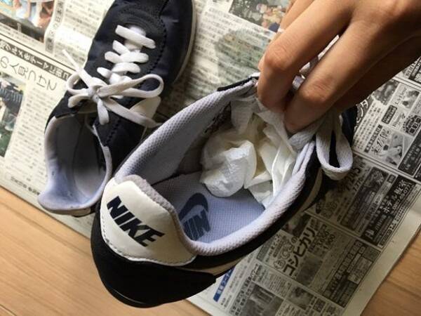 신문지 대신 휴지를 뭉쳐 넣으면 간단하면서도 빠르게 습기를 흡수할 수 있습니다. 여기에 소량의 베이킹소다를 뿌려 넣으면 냄새 제거 효과도 극대화됩니다.