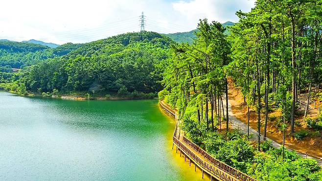 마장호수 출렁다리의 가치는 단순한 스릴에 있지 않다. 호수를 따라 조성된 3.6km 둘레길 전체가 평탄한 무장애 데크로드로 이어져 있어, 남녀노소 누구나 차별 없이 자연 속에서 산책을 즐길 수 있다.
