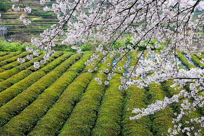 십리벚꽃길을 걷다 보면 녹음을 머금은 녹차밭이 몇 곳이 있습니다. 개인 사유지이기 떄문에 안으로 들어가 사진을 찍을 수는 없지만, 위로 벚나무가 살짝 보이게 차밭을 배경으로 사진을 남긴다면 색다른 인스타 사진을 남길 수 있습니다. 참고하셔서 푸른 녹차밭과 분홍 벚꽃의 조화를 한 사진에 담아보세요.