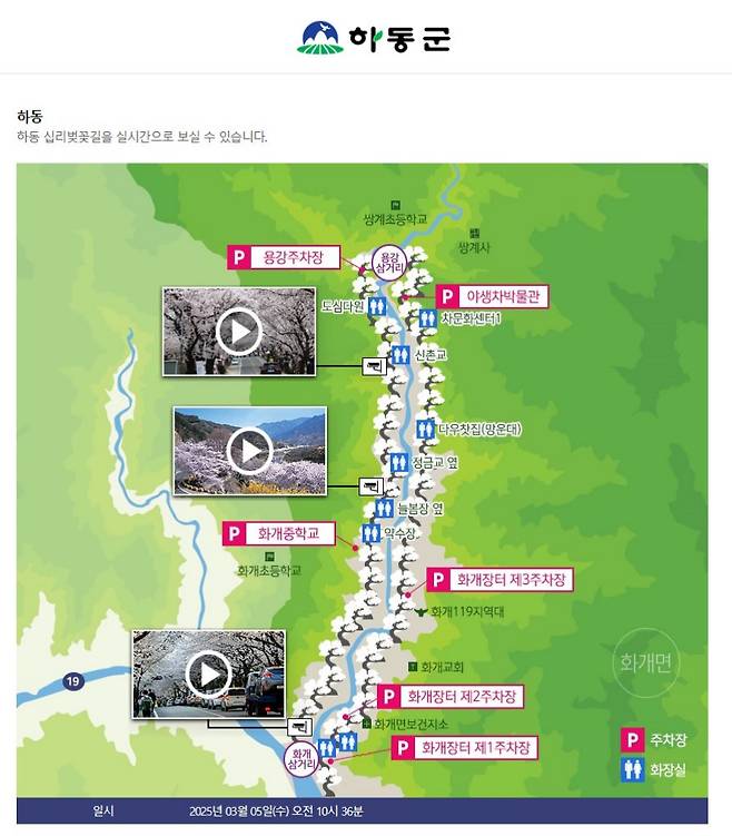 하동 십리벚꽃길은 너무 가고 싶지만, 혹시나 “벚꽃 만개 시기가 아닐 때 방문 하면 시간 적으로 큰 손해인데..”라고 생각되신다면, ‘하동군 CCTV’를 통해 벚꽃 만개 시기를 확인 하면 되는데요.
