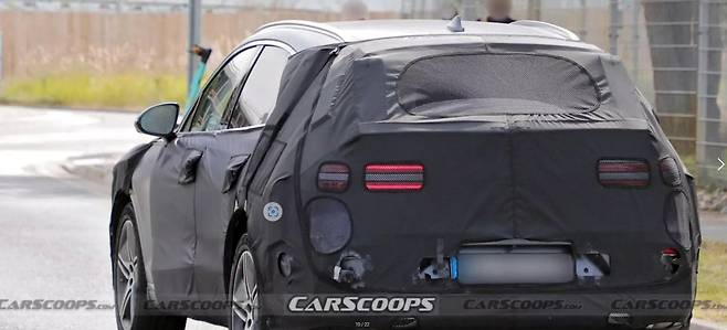 그 밖에도 후면부 디자인은 한층 더 두꺼워진 리어램프 디자인이 가장먼저 확인되는데 앞서 출시된 제네시스 GV70 페이스리프트 리어램프는 램프와 방향지시등이 하나로 합쳐진 디자인을 선보였던 만큼 테스트를 진행중인 GV70 일렉트리파이드 또한 이러한 변화가 적용될 것으로 예상할 수 있는데 후면부 범퍼 하단 디자인을 살펴보면 리플렉터 주변에 아무런 등화 장치가 존재하지 않기 때문에 앞서 말한 가능성이 매우 높다고 볼 수 있으며 그 외 브레이크 보조등 역시 역동성을 추구했던 모습과 다르게 일자 형태로 정돈된 브레이크 보조등이 적용되어 있습니다.